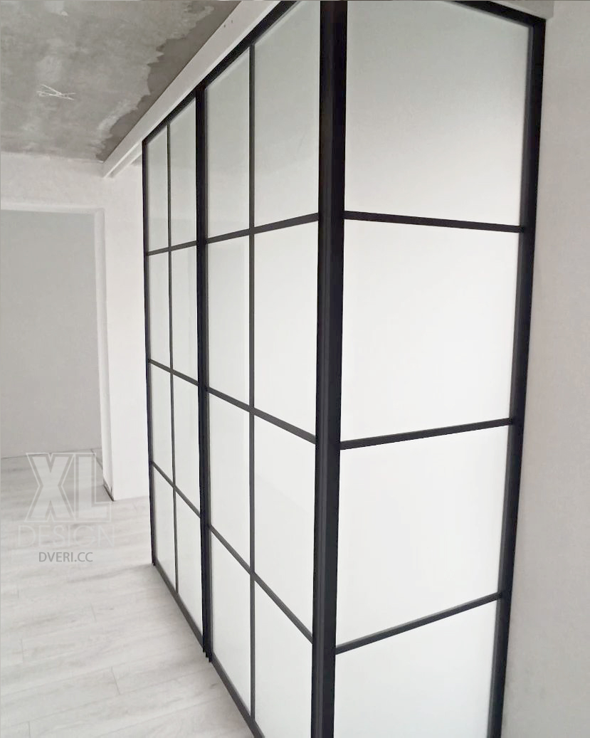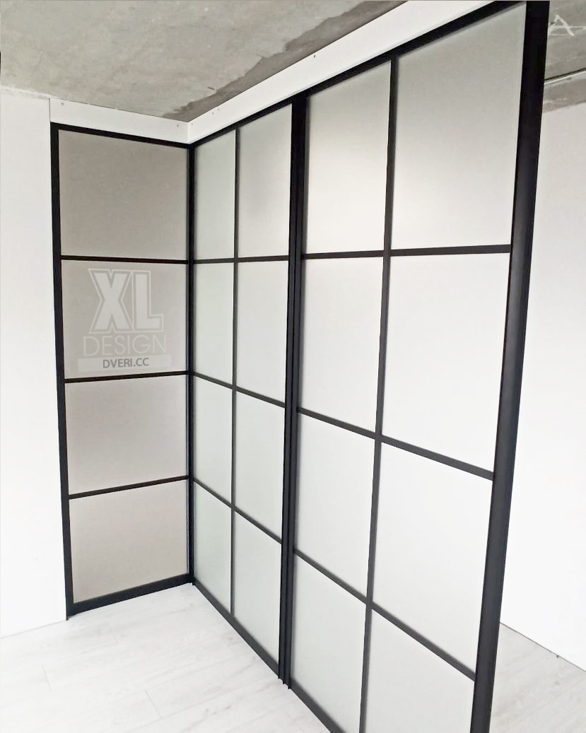 Угловая перегородка в комнату, стекло сатин, LOFT — Kletka